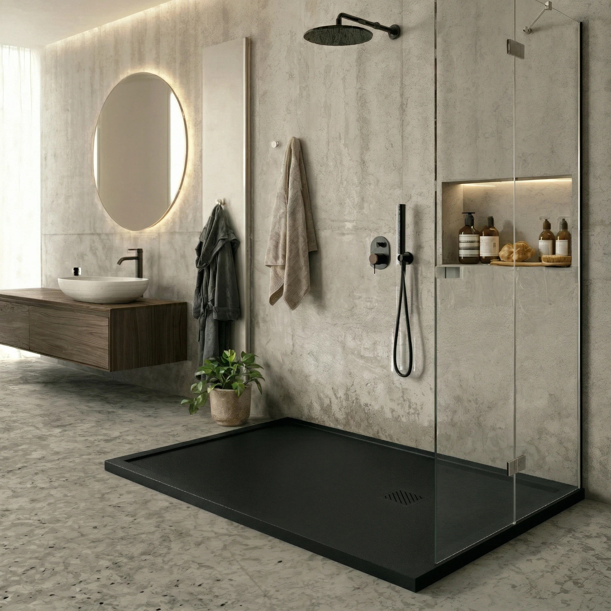 - Design Monobloc (3,5 cm) : Le cadre et le receveur sont fusionnés en une seule pièce sans aucun joint, assurant une étanchéité parfaite et un design ultra-fluide.