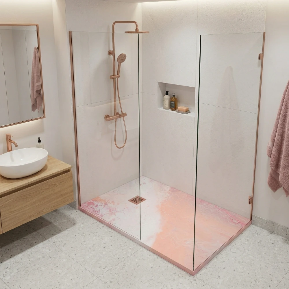 ImberDeck présente le modèle Grand Trianon, une pièce maîtresse de notre Collection Signature 3D où le receveur de douche devient une véritable œuvre d’art contemporaine. Inspiré par la fusion des minéraux et le mouvement de l’eau, son design «Fluid Art» déploie des nuances vaporeuses de quartz rose et de blanc marbré. Chaque douche se transforme en une expérience sensorielle unique, sublimée par une esthétique de haute couture qui redéfinit le luxe architectural.