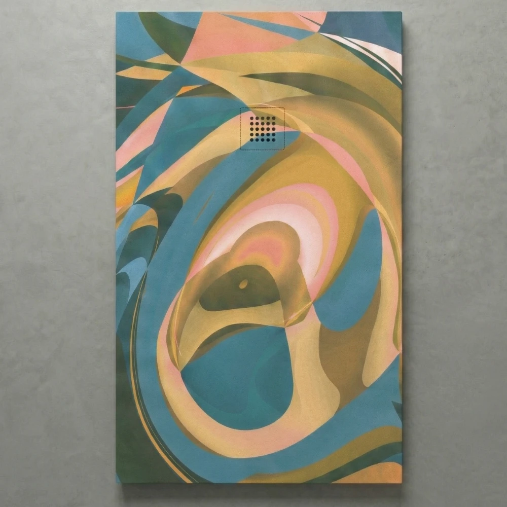 - Design Exclusif «Fluid Art» : Un motif multicolore haute définition créé sur-mesure, où chaque onde de couleur apporte un dynamisme et une énergie uniques à l’espace de douche.