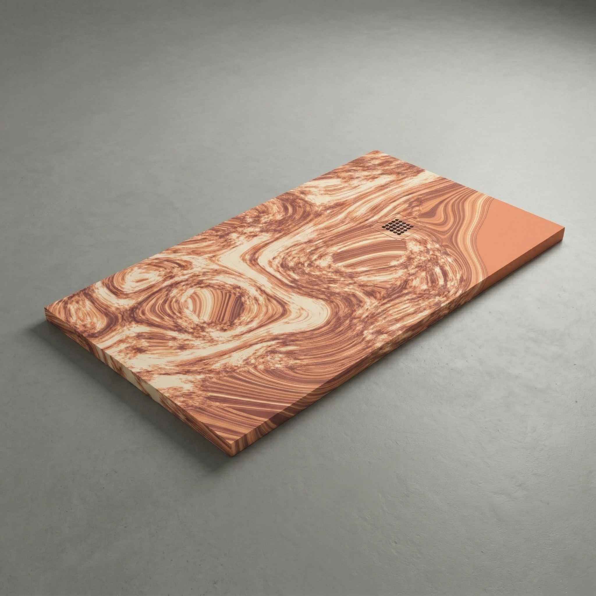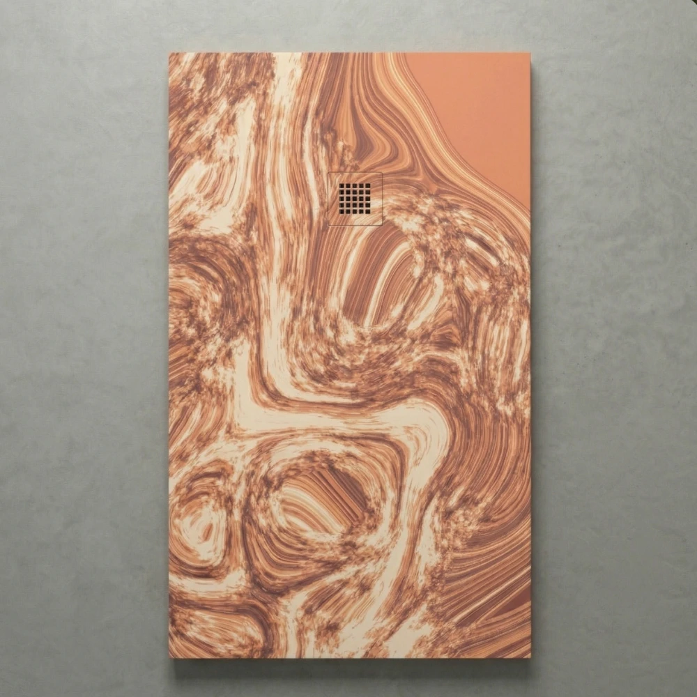 ImberDeck présente le modèle Parquet Versailles, une pièce d’exception de notre Collection Signature 3D qui fusionne la noblesse des bois précieux avec la fluidité du design contemporain. Sa texture exclusive évoque une «racine de noyer liquide», où les veines de bois ambrées dansent sur une base de terre cuite sophistiquée. Ce receveur ne se contente pas d’habiller votre salle de bain ; il y installe une atmosphère de sérénité et de chaleur naturelle, propre aux intérieurs les plus prestigieux.