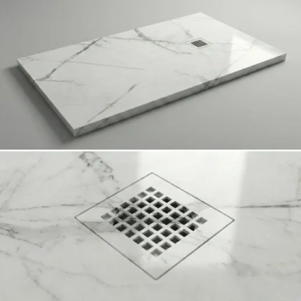 Renueva tu baño con el plato de ducha modelo Lunir. Su acabado realista en imitación terrazo combina la nostalgia clásica con las prestaciones actuales. Disfruta de una superficie antideslizante, altamente resistente y de muy fácil limpieza diaria.