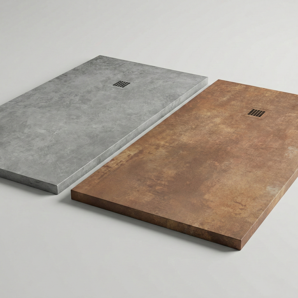 Presentamos nuestra exclusiva gama de platos de ducha con impresión digital de alta definición, compuesta por los modelos Flint y Forge, diseñados para transformar el baño en un espacio de vanguardia. Cada modelo ha sido desarrollado buscando el equilibrio perfecto entre la estética urbana del cemento y la resistencia de los materiales de resina actuales, ofreciendo una superficie antideslizante que garantiza seguridad sin comprometer el diseño. El modelo Flint se decanta por una elegancia sobria y minimalista en tonos grises, ideal para proyectos modernos, mientras que el Forge aporta una estética mucho más audaz y con carácter gracias a su espectacular efecto de cemento oxidado. Esta colección no solo destaca por su impacto visual, sino por una durabilidad extrema ante el desgaste diario, manteniendo el realismo de sus texturas industriales durante años. Es la solución definitiva para reformistas y arquitectos que exigen personalidad, higiene total gracias a su tratamiento antibacteriano y una instalación sencilla que se adapta a cualquier configuración de espacio.